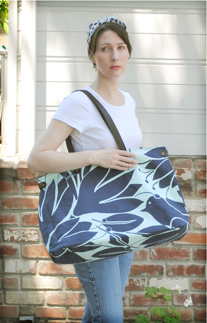 Citta design sent me the Floridita navy/aqua tote bag from their 2012 summer collection (pictured above). Above is a photo of me with the bag so you could see just how big the tote is. Even though the dimensions were stated in the description I pictured it smaller.