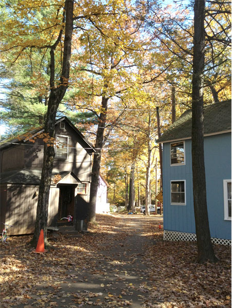 See that brown house on the left? That's where I grew up. I have fond memories riding my pink powder-puff big wheel down this street. I also recall how tiring it was to drag it back up the hill. There was so much to do on the campground, jumping in freshly piled leaves in the fall, sledding in the winter, and swimming in the summer.