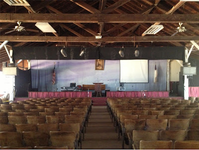 This is the tabernacle where the services would be held while camp was going on. On both sides of the church the walls open up like garage doors. Often I would stand outside and watch what was going on. Sometimes I would even sneak into one of the seats.