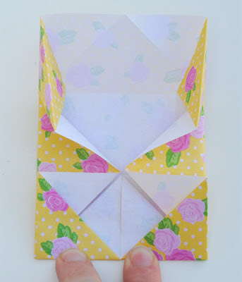 Starting with the blank side up, fold paper for directions 1 - 7. For step 8 I've created some photos to make it a little easier to see how I got to step 9.